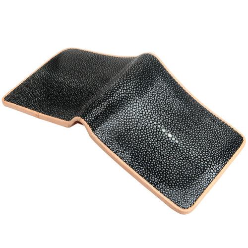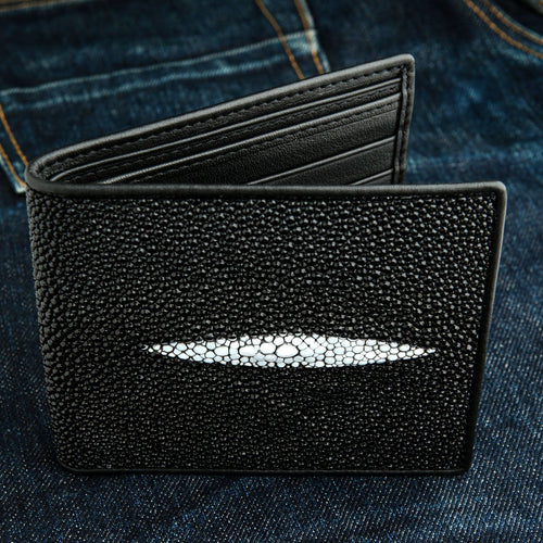 Stingray leather – this is what you lay your eye on – is more than beautiful. While its pebbled texture is a real feast for the eye, its durability knows no equal. It is 25 times stronger than cowhide, doesn’t it sound impressive? To prove that we provide genuine leather, this wallet exhibits the remnants of a fin aka stingray’s crown. Only high-quality stingray skin products feature these large white dots.