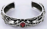 BIG GARNET GUARDIAN DRAGON SOLID 925 STERLING SILVER CUFF ~BRAND NEW